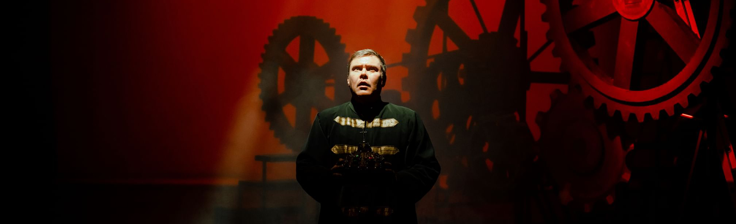 Блистательная актерская работа заслуженного артиста РФ Юрия Голубцова, Владимира Давиденко и Валерия Толкова. Широкий диапазон образов, создаваемых ими на сцене, в полной мере представляет все пороки любых диктатур.